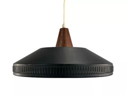 NK - Nordiska Kompaniets Mid Century Tafellamp met teakhouten voet en geribbelde kunststof kap uit de jaren 1960