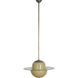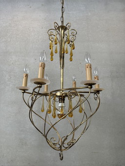 elegante hangende kroonluchter mid century, palwa kristalglas en verguld messing