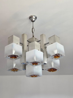 Vistosi Mid-Century Design Glazen Schijf Kroonluchter - 1970