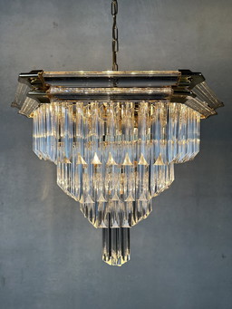 Grote Vintage Kroonluchter Teardrop Glas Messing