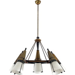 Vintage kroonluchter in metaal, hout en glas van Instala Decin, Tsjecho-Slowakije 1970