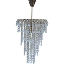 Kroonluchter, vintage waterval, 5 verchroomde en glazen hangers