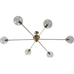 Vintage kroonluchter in messing en glas 1950
