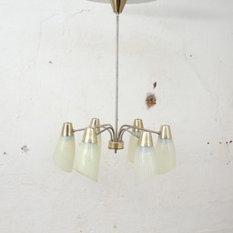 Kroonluchter uit de jaren 40 met bloemen in messing en glas