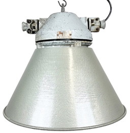 Grote grijze geëmailleerde industriële fabriekslamp van Elektrosvit, jaren 60
