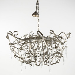 Venetiaanse Hanglamp, geblazen in ijzeren kooi, Murano,