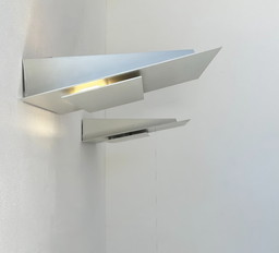Goffredo Regianni Italië Space Age Hanglamp, 1970, Wit geschilderd metaal & chromen schilden, Mid Century, Industrieel, Spoetnik