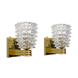 2 Muranoglas en messing wandlampen in mid-century moderne stijl