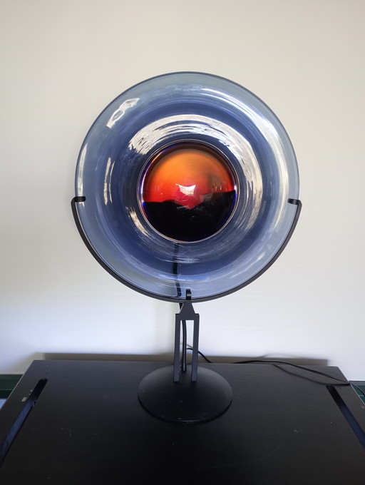Een tafellamp gemaakt van een originele Dümler & Breiden Pop Art vaas uit de jaren 70, vervaardigd uit gerecyclede materialen.
