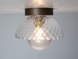 Italiaanse plafondlamp uit de jaren 70 | ijsglas en hout | Mid Century Modern