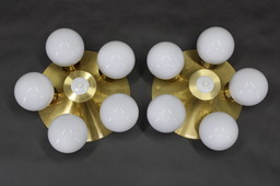 Een paar messing plafondlampen uit het midden van de 20e eeuw, jaren 70.