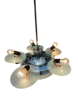 1930 Art Deco Chroom Kroonluchter met Matglazen Schijven - Czech Vintage Verlichting