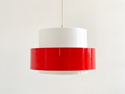 Kersenrode vintage glazen hanglamp Peill & Putzler, jaren 60