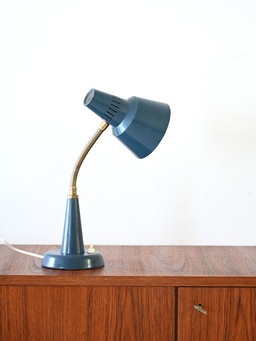 Vintage Opaline Blauwe Tafellamp Goud Frame
