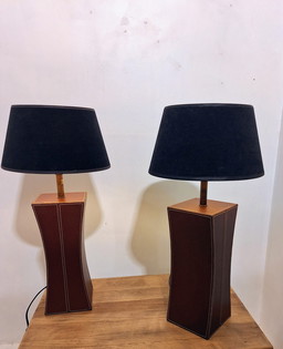 Set Van 2 Rotan Rieten Tafellampen Birma Vintage