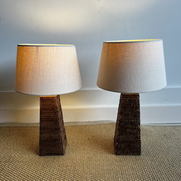 Prachtige Mid Century Modern driepoot raffia bast tafel nachtlamp in zeer goede vintage staat