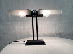 80s design tafellamp met 2 kappen glas metaal80s design tafellamp met 2 kappen glas metaal