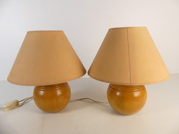 Twee gelakte massief houten bollampen uit de jaren 1980 van het Italiaanse designmerk IMTTwee gelakte massief houten bollampen uit de jaren 1980 van het Italiaanse designmerk IMT