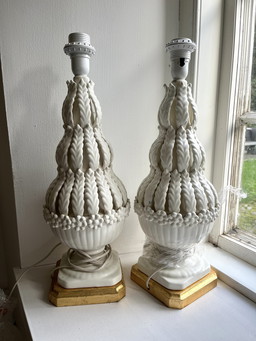 Paar Vintage Manises Tischlampen, Weiß Keramik, Majolika, 1960S
