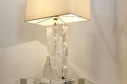 Grote plexiglazen tafellamp uit de jaren 1980 met zijden kap