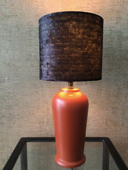 Grote vintage oranje keramieken tafellamp, vintage/retro fat lava lampenvoet met nieuwe handgemaakte lampenkap van originele vin