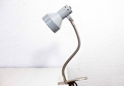 Werkplaatslamp op metalen klem uit de jaren 1950