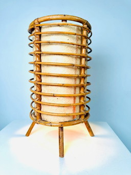 Louis Sognot tafellamp van bamboe en perkament, Frankrijk, jaren 60