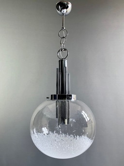 Glas jaren 1960, Limburg, Mid Century Vintage Lamp, Bubbelglas, Hanglamp, Duitsland, Minimalisme, Ruimtetijdperk, Industrieel