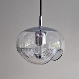 Set van 2 Vintage Plafondlamp Helder Rond Bewerkt Glas Seventies