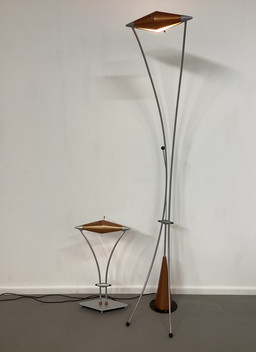 Vintage Grenen Scandinavische Vloerlamp met kunststof kappen
