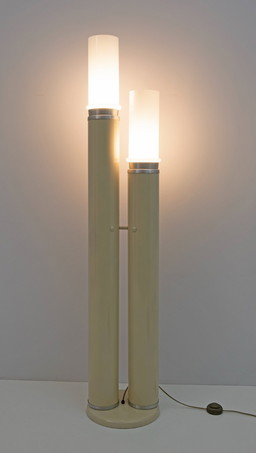 Space Age Opaline Glas en Gelakt Metaal Cilinders Vloerlamp, 1970