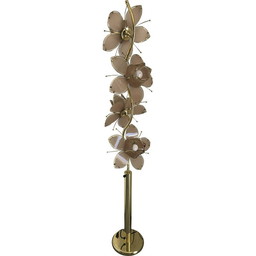 Vintage messing en glazen lotusbloem vloerlamp, 1970
