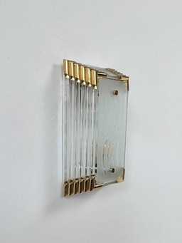Set van twee moderne wandlampen van transparant Murano-glas en messing, Italië