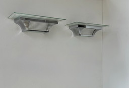 Vintage boogvormige wandlampen. Messing en rookglas. 1970
