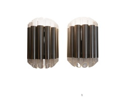 Paar vintage wandlampen, geborsteld metaal, Frankrijk 1970.