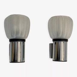 2X wit metaal en gezandstraald glas geometrische wandlampen - Italië 1970