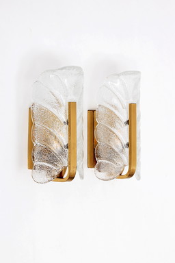 Wandlamp van Murano glas en messing blad van Franco Luce, 1970