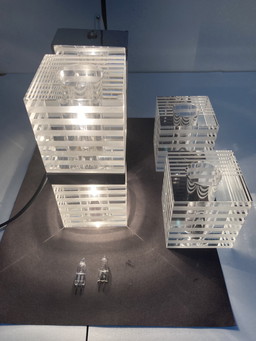Modernistische glazen plafondlamp VEB Narva Duitsland jaren 70.
