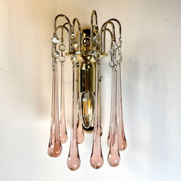 Paar moderne lichtroze wandlampen van Murano glas