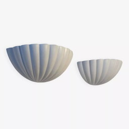 Een paar vintage wandlampen in de vorm van schelpen, mat wit, Frankrijk 1970