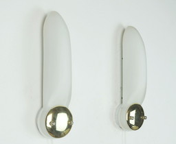 paar lange smalle honsel 1990 SCONCES wit glas satijnglas en messing