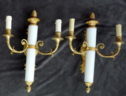 2 verguld bronzen empire wandlampen porselein restauratie2 verguld bronzen empire wandlampen porselein restauratie