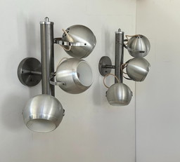 Paar vintage verstelbare wandlampen, verchroomd en geborsteld metaal, Frankrijk 1970