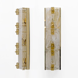 Paar moderne messing en Murano glazen "Scavo" wandlampenPaar moderne messing en Murano glazen "Scavo" wandlampen