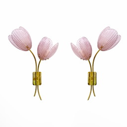 Paar Tulpen Murano glas en messing wandlampenPaar Tulpen Murano glas en messing wandlampen