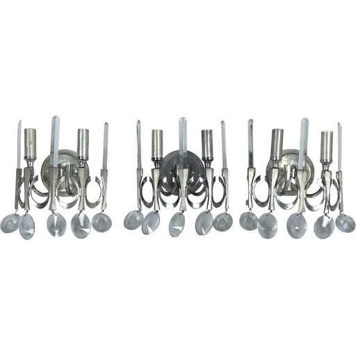 Vintage wandlampen van glas en metaal van Ernesto Gismondi, 1980