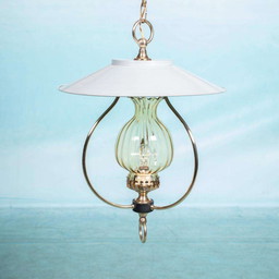 Vintage jaren 50 hanglamp glas en messing, lantaarn hallamp