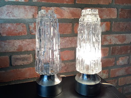 Jaren 1960 Set Van 2 Rots Ice Glass Tafellampen, Chromen Basis, Duits Mid-Century