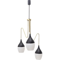 Vintage messing kroonluchter met 3 druppels, Italië 1950