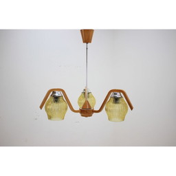 Vintage glas en hout gebogen ophanging, Tsjecho-Slowakije 1960